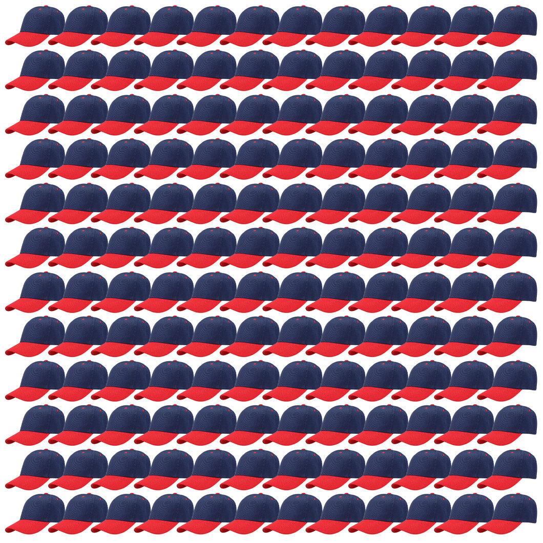 144-Pack Baseball Dad Cap Velcro Strap Adjustable Size - Navy/Red