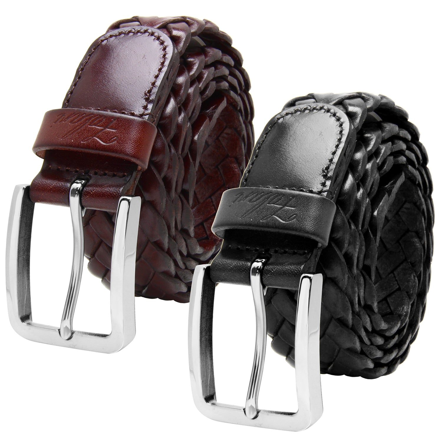 Men's Leather Braided Belt Stainless Steel Buckle 35mm