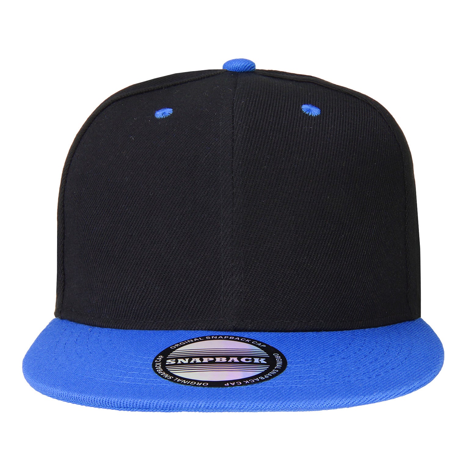 Hip Hop Style Snapback Hat Flat Bill Adjustable Size - Black/Royal