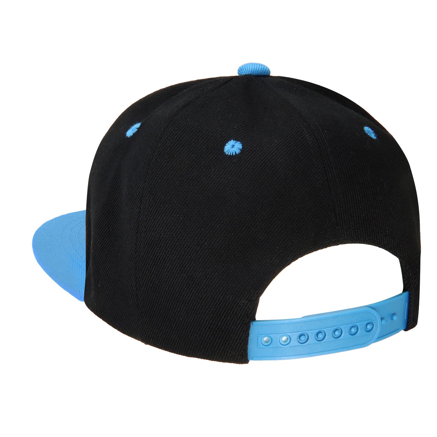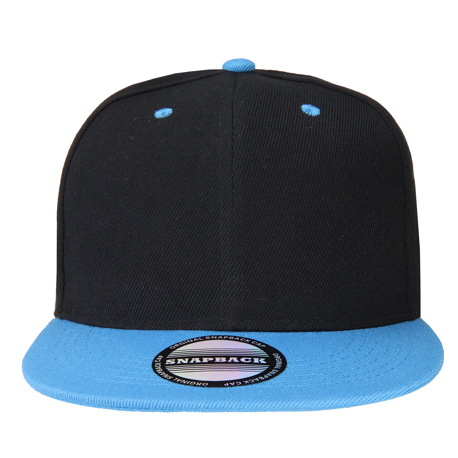 Hip Hop Style Snapback Hat Flat Bill Adjustable Size - Black/SkyBlue