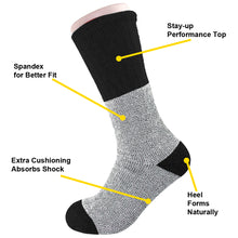 Our thermal socks are double layer insulation. Fully cushioned footbed, heel & toe heavy weight fabric construction, mositure wicking guaranteed to keep feet warm and comfortable.