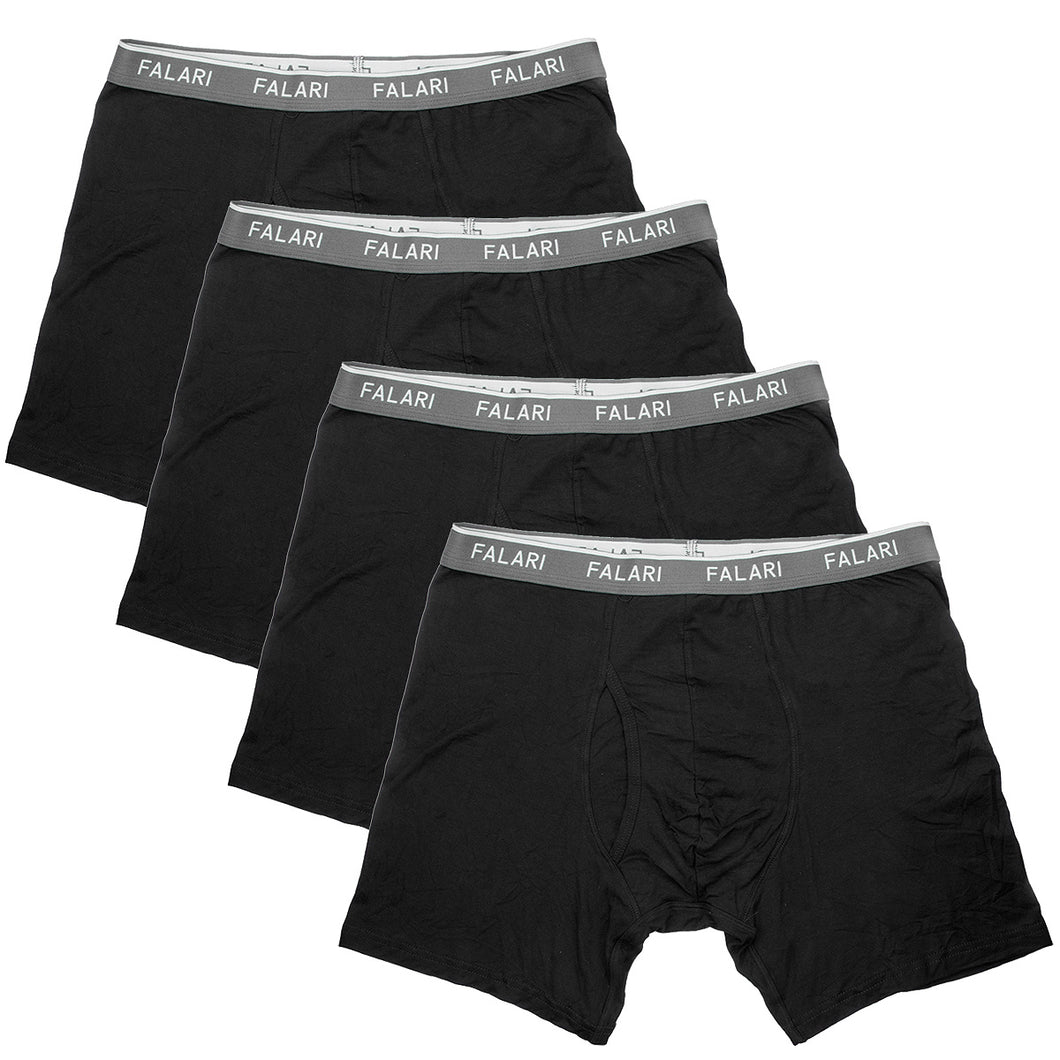 Falari Men's 4-Pack Black Bamboo Rayon Ultra Soft Lightweight Breathable Boxer Briefs Underwear