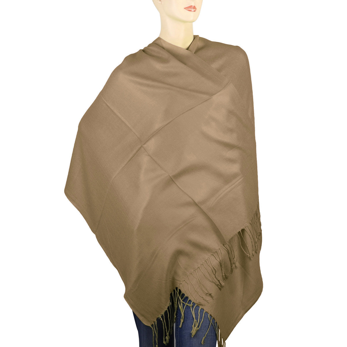 Women's Soft Solid Color Pashmina Shawl Wrap Scarf - Pale Brown