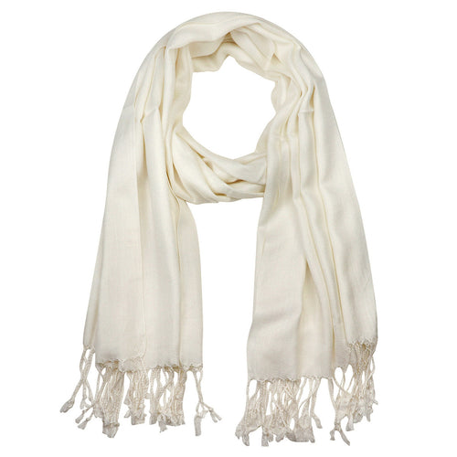 Women's Soft Solid Color Pashmina Shawl Wrap Scarf - Ivory