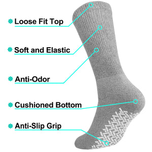 Men Women Anti Slip Grip Non Skid Crew Cotton Diabetic Socks For Home Hospital 6-Pairs